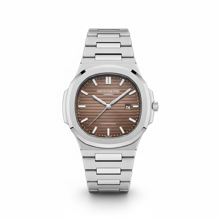 Silver Steel Watch with Brown Dial